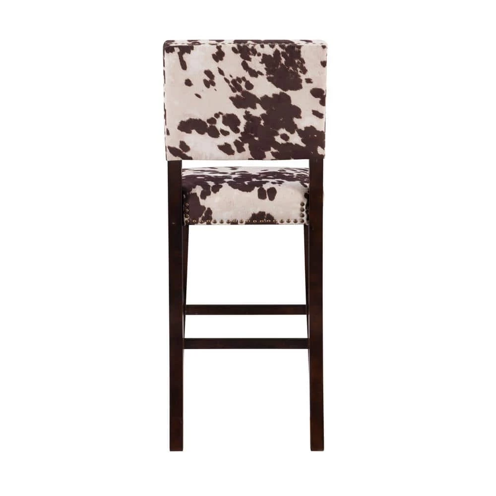 Some would call it “udder madness,” but we think this Reese Udder-Madness Brown Upholstered Barstool with a brown and white cowhide print microfiber is fun and fashionable. The simple espresso stained solid wood legs complement the pattern on the padded seat and back. Antique bronze nail head trim accents the piece, while wood foot rails provide stability and comfort. This stool is suitable for a bar or pub table 41 in. to 43 in. H, or as extra seating elsewhere. We recommend grouping several for a signature design statement.