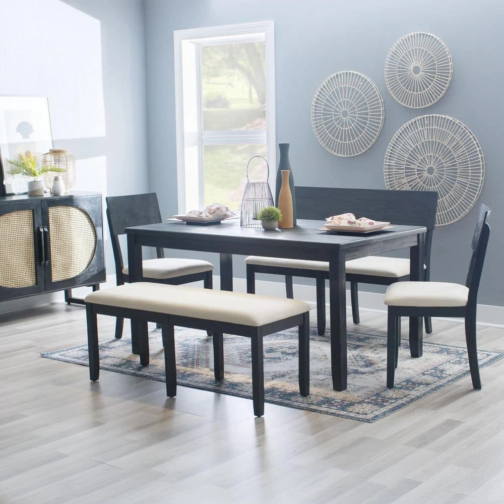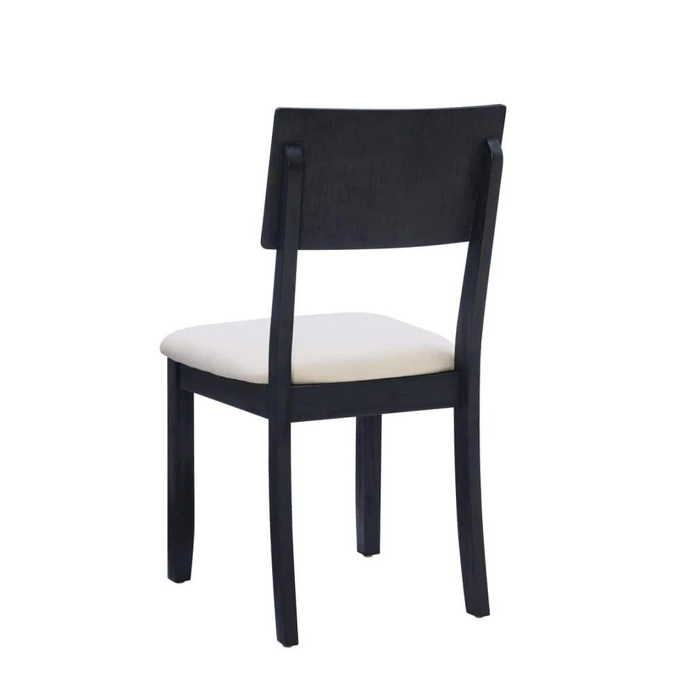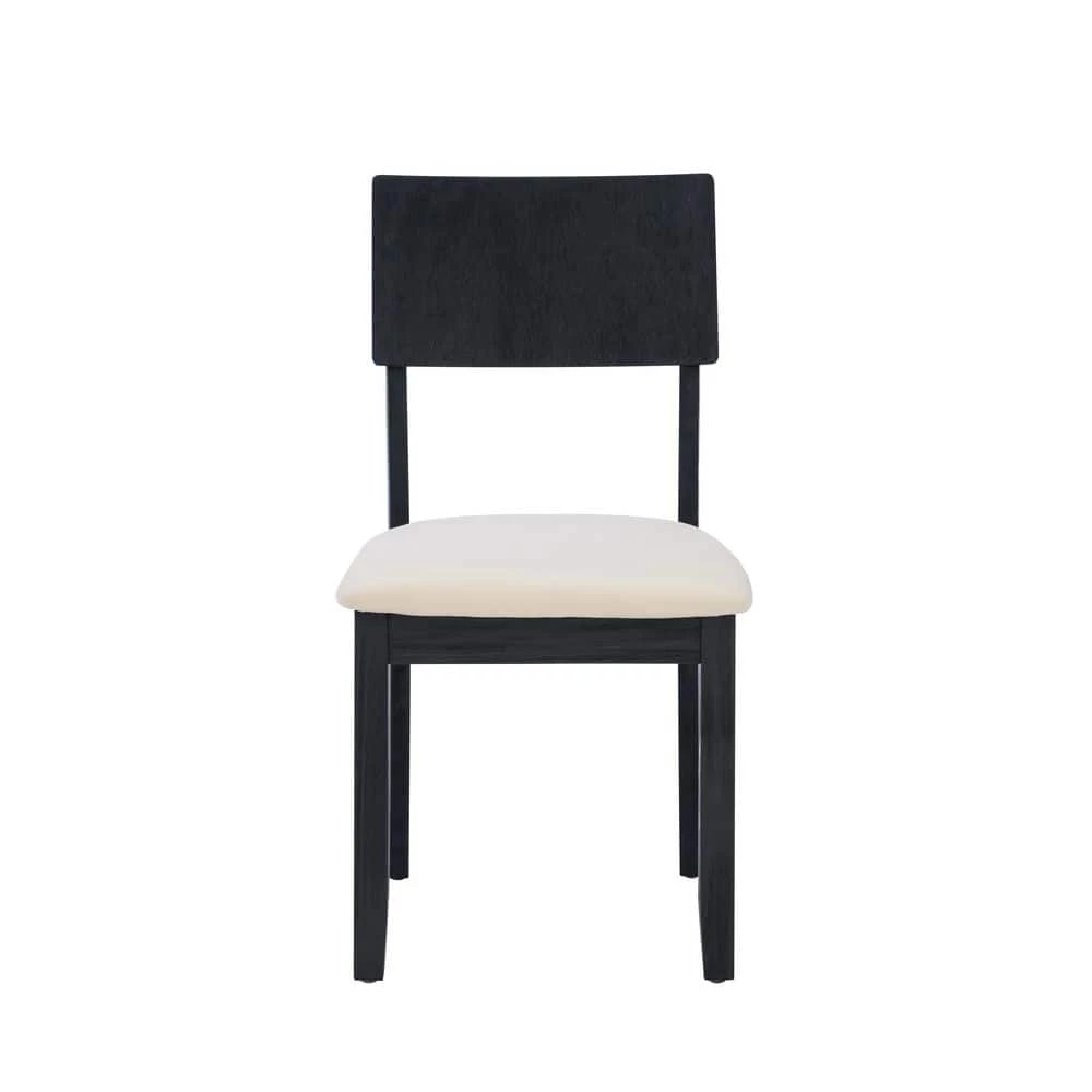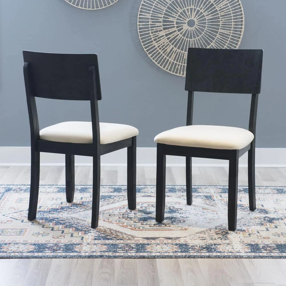Classic farmhouse design outfitted with modern comfort; this Rodman Dark Charcoal Side Chair (2 pk) is the perfect accent in traditional and contemporary settings alike. The solid acacia wood frames are finished in a dark charcoal black that reveals traces of the wood grain, contributing to an earthy, rustic character. Generously padded cushions are upholstered in beige linen and cotton fabric for easy maintenance and guaranteed relaxation. Revamp your dining space with a complete ensemble by also purchasing the matching dining table and bench.