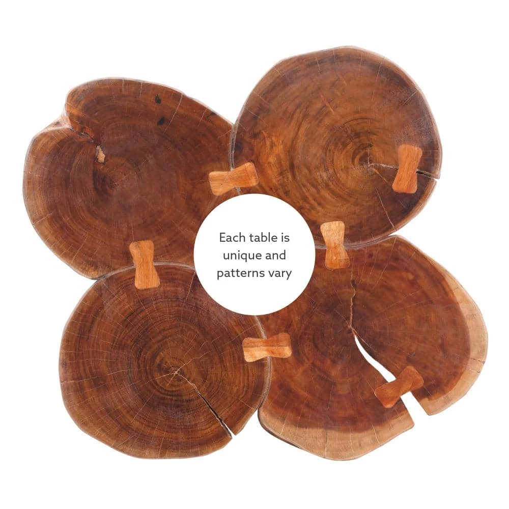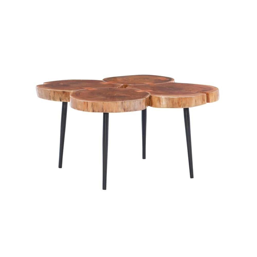 Bring a touch of the outdoors into your home with this distinctive Rose Live Edge Small Coffee Table. 4-unique tree sections join together to create what will surely be a favorite showpiece. Live edges give a rustic look, while the top is polished to provide a smooth surface. The generously sized tabletop provides a perfect stage for drinks, snacks, books and magazines. Levelers under the 4 tapered legs ensure a stable surface to keep your belongings safe. Perfect in a living room, bedroom, office or den.