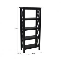 Ramsey 54 in. Black Wood 4-shelf Standard Bookcase with Open Back by Linon Home Decor
