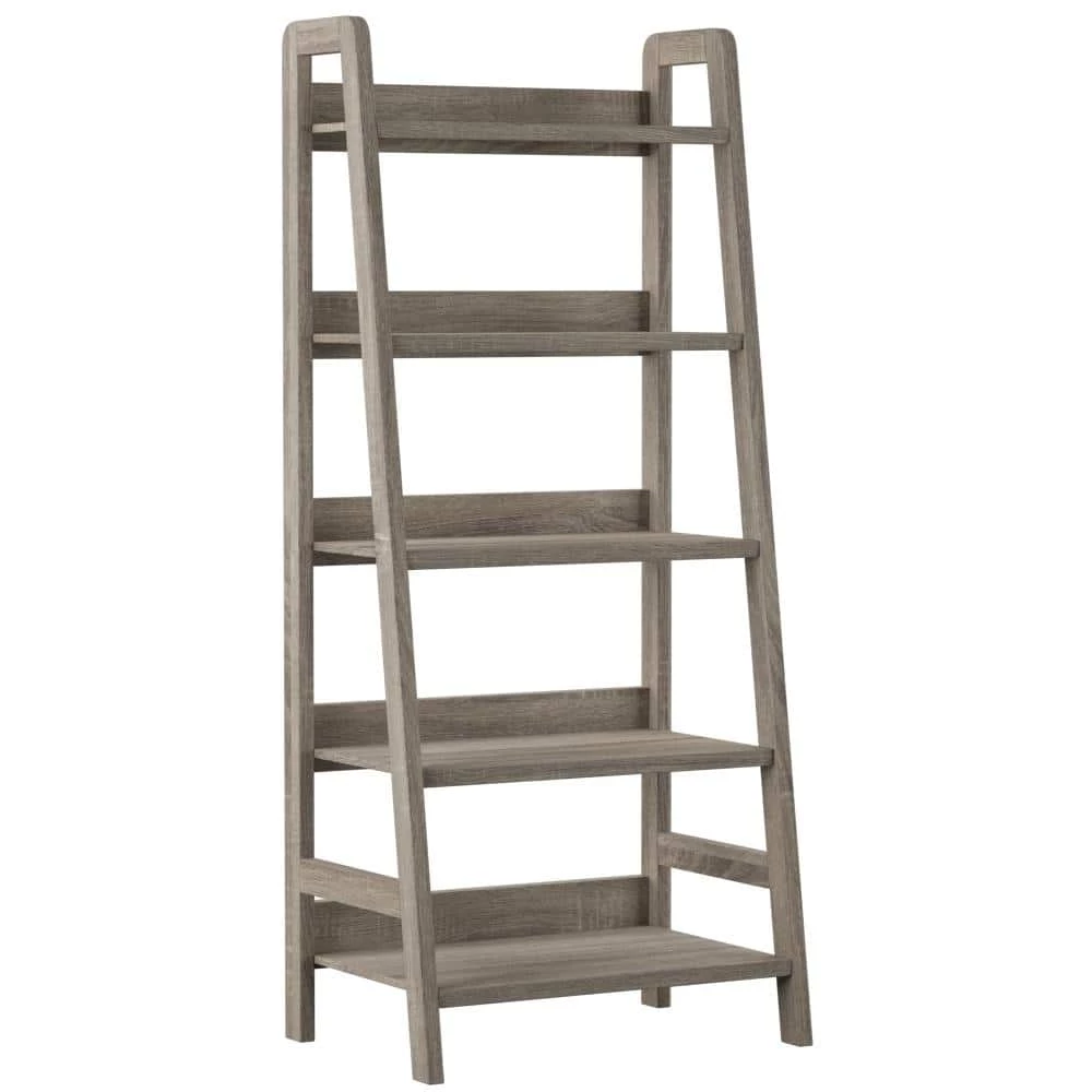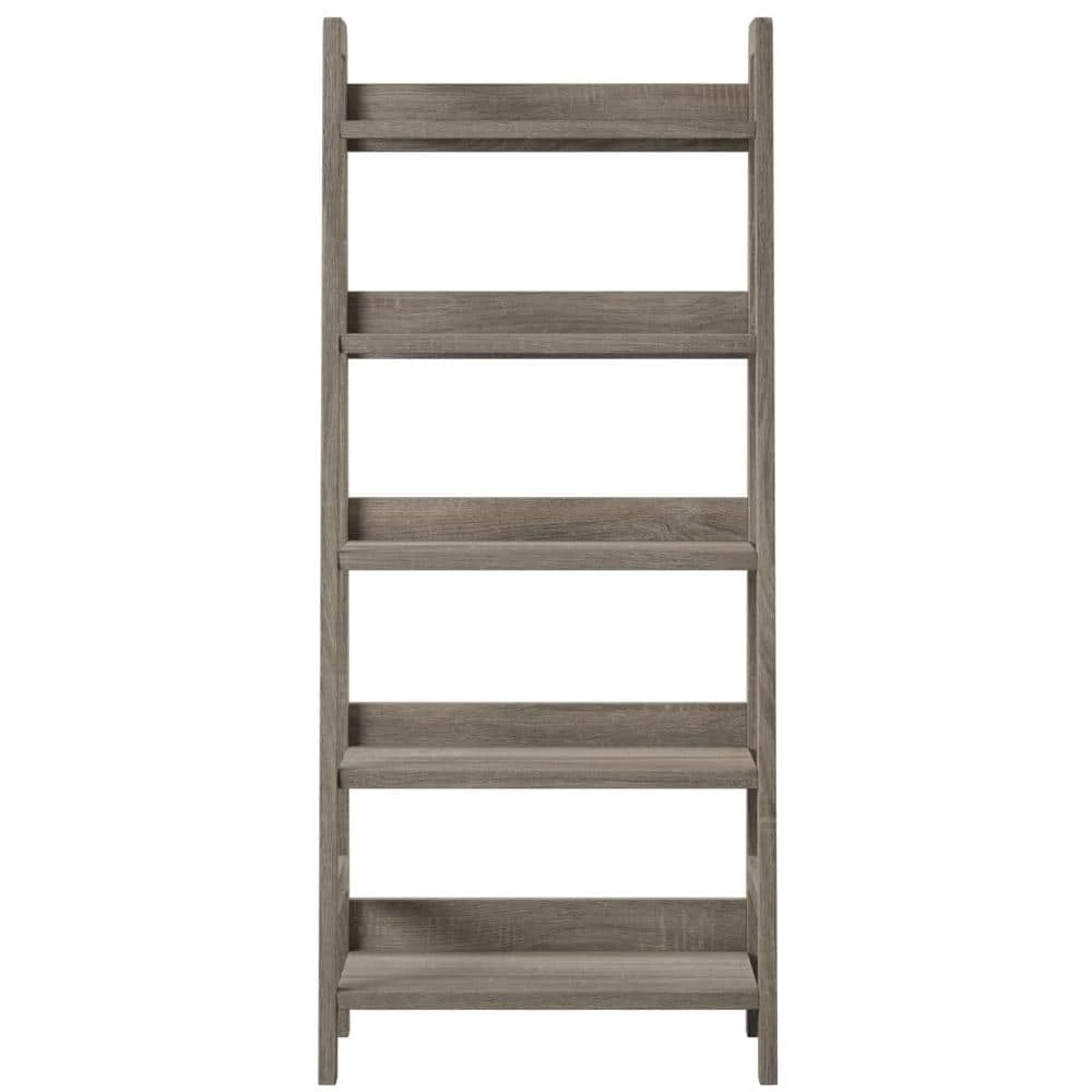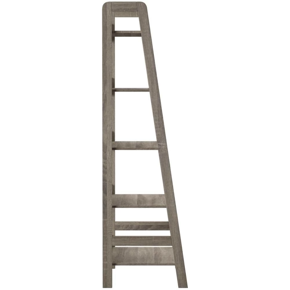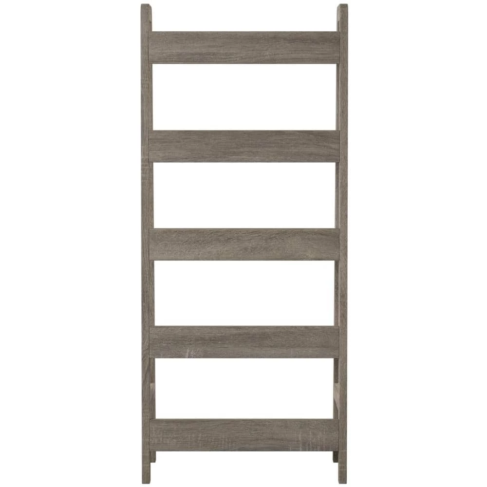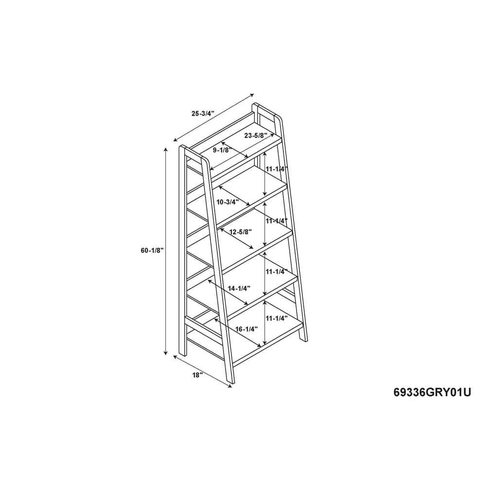 Keep your office stylish and organized with the Stacey 60 in. H Grey Wood 5-Shelf Ladder Bookcase with Fixed Shelves. Perfect for adding storage and display space to your area, the Tracey Ladder Bookcase is sturdy and durable. Five spacious shelves provide ample space for books, accent pieces and frames. The gray finish and transitional design makes it an easy addition to your home’s existing decor.
