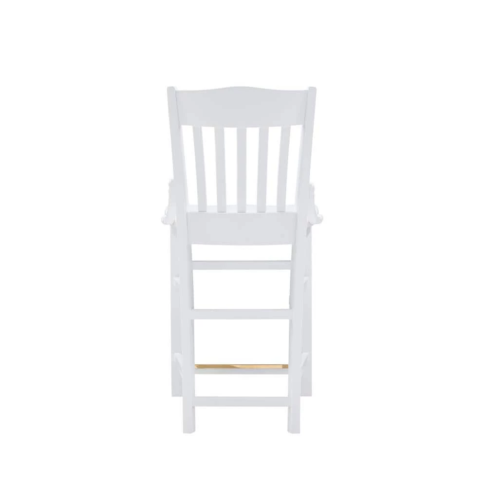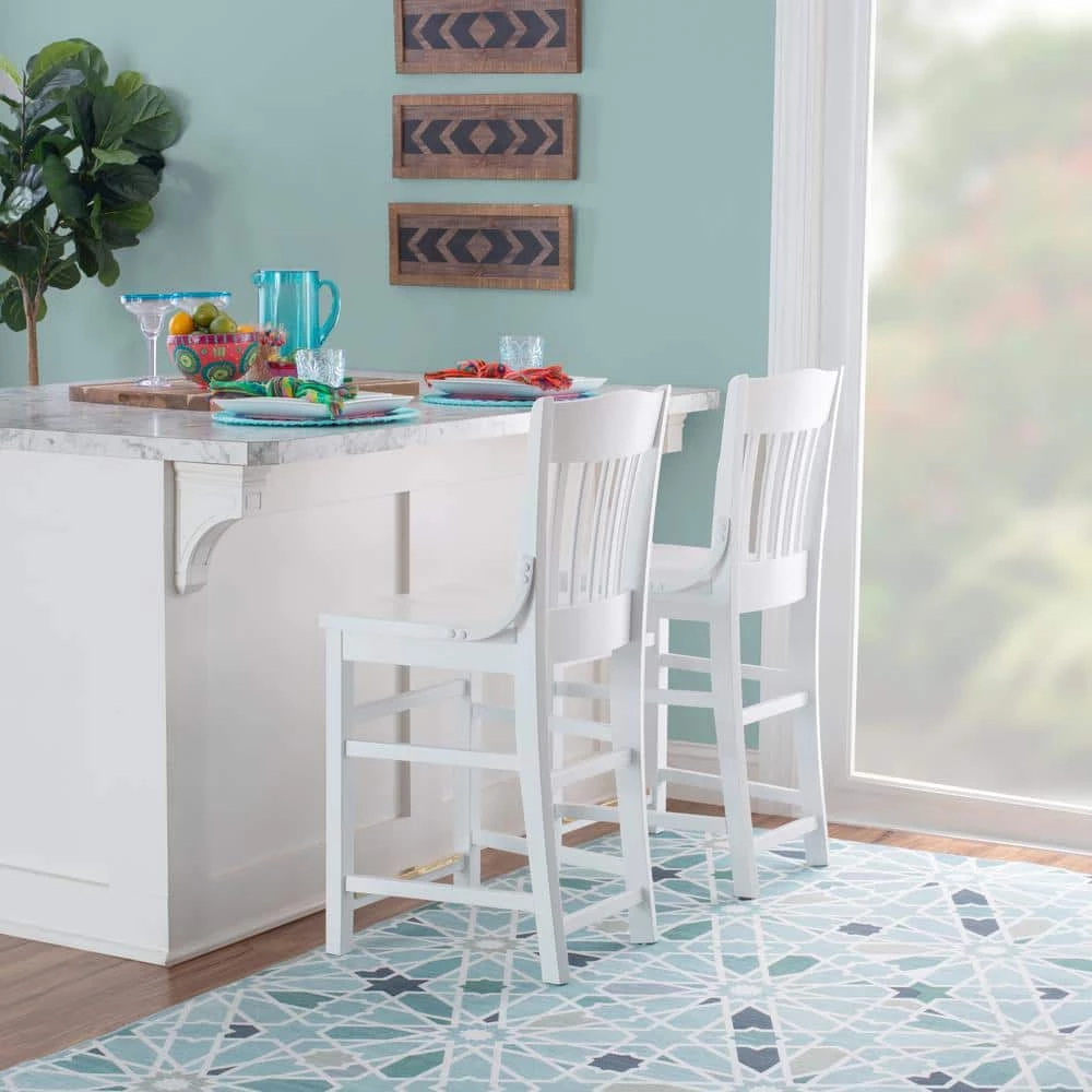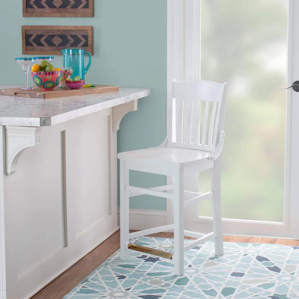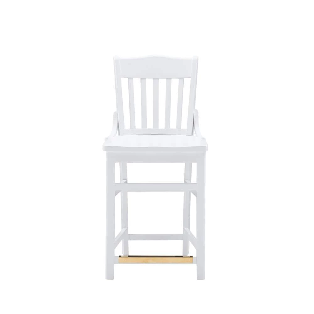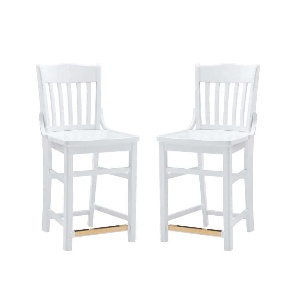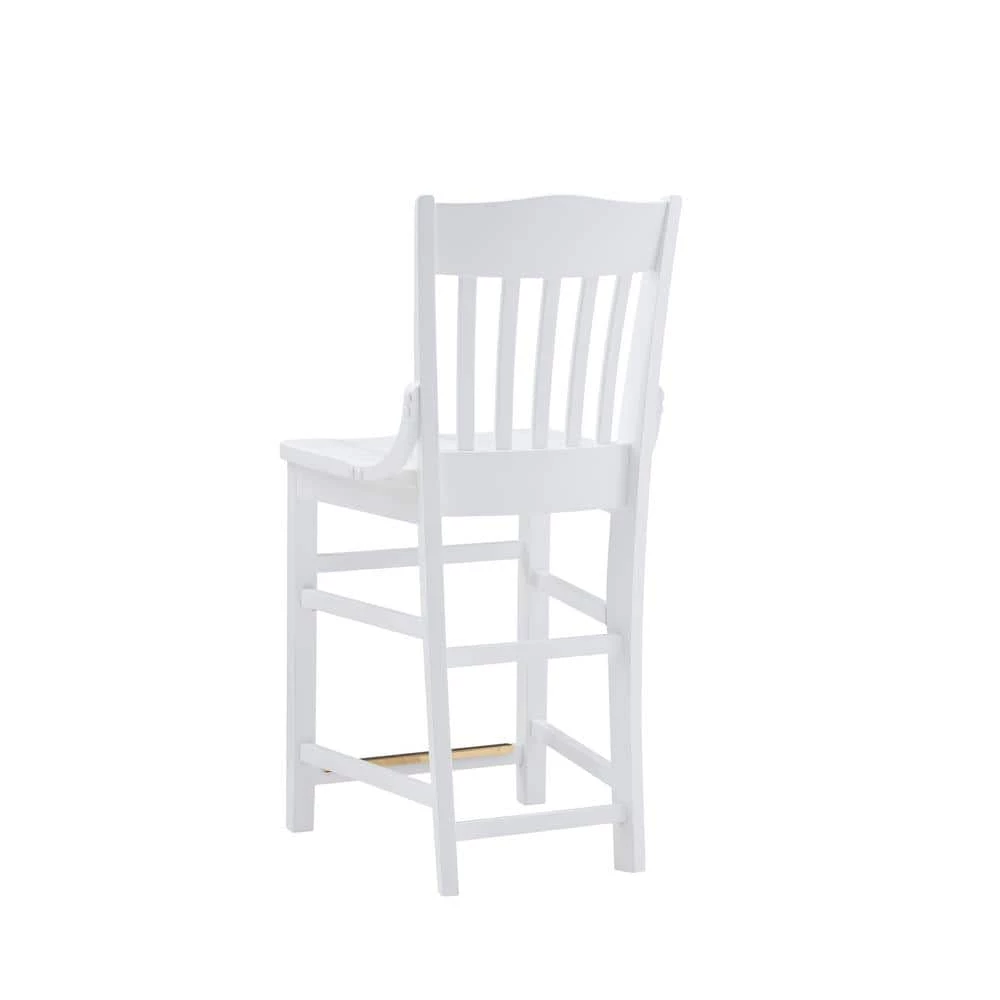 Infuse your home with the essence of an old time country tavern with this pair of Thaler White Counter Stool w/ wood seat (Set of 2). Painted in a lustrous white before being sealed, sanded and covered in a glossy lacquer finish. The solid beechwood frame is made to shine on through many a family gathering or dinner party. The traditional slat back design and footrest offer comfortable support. This American made piece arrives fully assembled and supports up to 300 lbs.