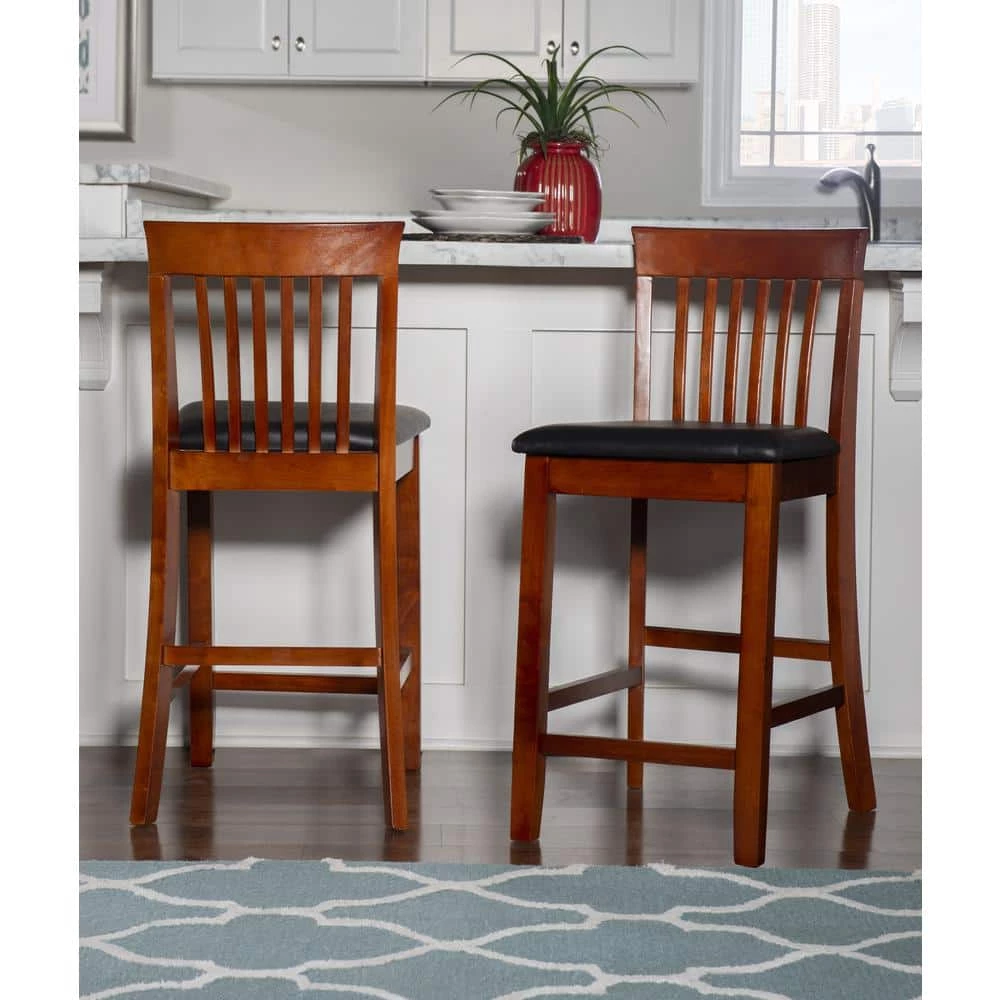 The Linon Home Decor Triena Bar Stool is a stylish and comfortable addition to your kitchen space. This stool has a vinyl seat, which resembles leather and is especially easy to maintain. Featuring a wooden frame, it can be a part of any design scheme since it has a timeless feel. This stool features a modern style, which adds a contemporary finish to your counter space. It is designed without arms, so you can tuck it under the table or bar. It features a full back, providing you with a lot of support, so you can sit comfortably for an extended period of time. This stool has a foot rest, providing you with a place to put your feet while sitting. This brown stool will pair well with the rest of your home decor.
