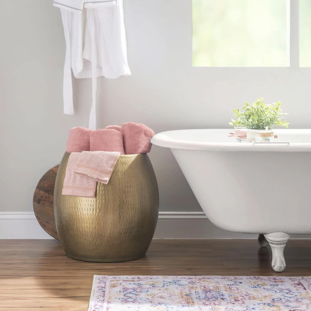 - Hammered iron drum body with muted gold finish offers a rustic flair