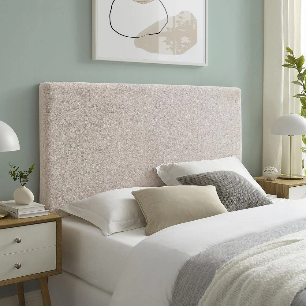 Soft and supportive, stylish and easily integrated into almost any setting, this all encompassing Winslow Beige Sherpa Full/Queen Upholstered Headboard got your back. We all need somebody to lean on and this add on piece is the perfect solution for filling the gap between the wall and your bed. Unbelievably soft Sherpa upholstery in natural hues lines the foam padded panel, as well as the legs that can be mounted for extra stability. The rectangular shape is perfectly suited for full and queen size beds.