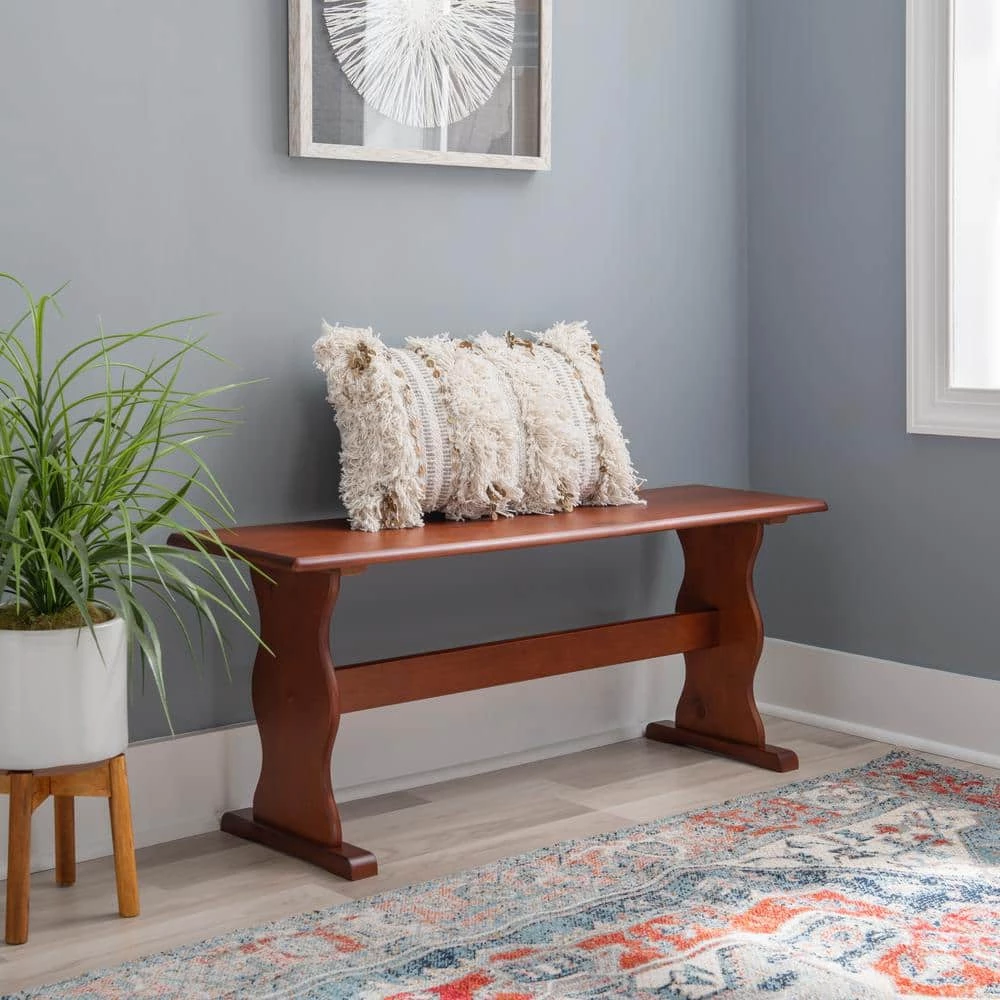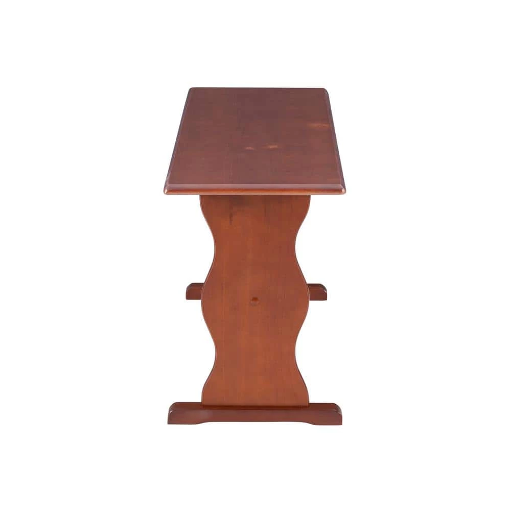 Create a cozy spot for meals and conversation in any corner of the kitchen. The rich walnut finish on this corner nook provides a traditional look to this Zoe Walnut Simple bench 17.25″ H x 43.25″ W x 12″ D. The nook corner bench and nook free-standing bench seats five people comfortably. You can determine the direction of the corner unit during nook assembly.